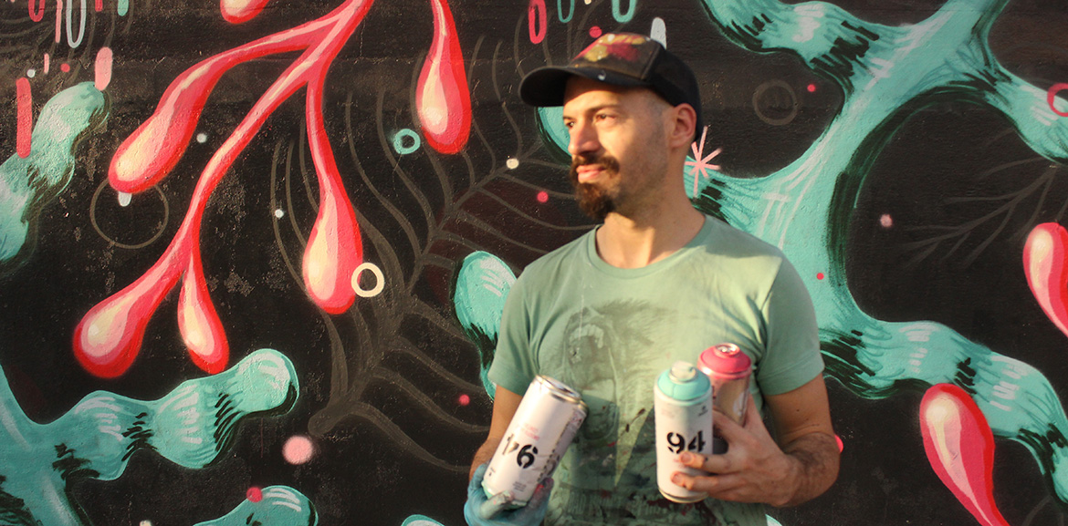 Being part of the emerging street art movement in Argentina, his walls and paintings have landed in several cities and publishers of Latin America, Mexico, USA and Europe.Influenced by various artistic expressions such as pop-surrealism (lowbrow), cubism and modern architecture, his works have a strong color imprint and coexistence between geometric and organic, defined and stained shapesm, result of his back and forth going between the fine art and street art.